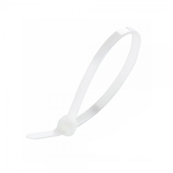 Стяжка кабельна (хомут); матеріал поліамід 6.6, стійкий до УФ-впливу, розчинників, мастил і змащувачів; максимальне навантаження 18 кг; робоча температура -40°С~+85°С; розміри (Ш / Д) 4 / 200 мм; колір білий; 100 штук у пакуванні