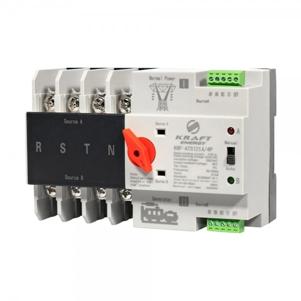 Автоматичний перемикач (АВР) під DIN-рейку Kraft KRF-ATS125A/4p 4 полюси