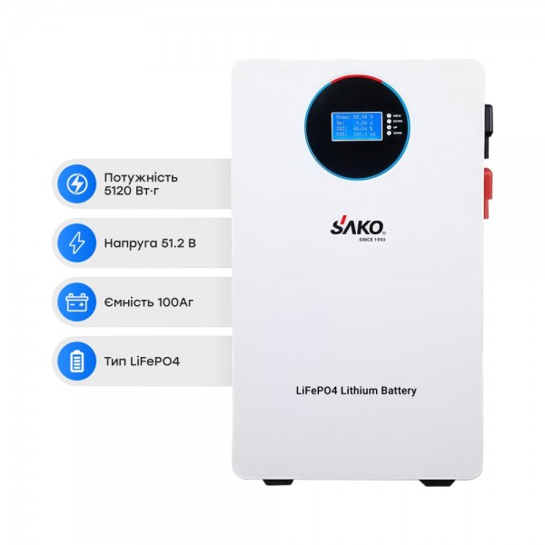 Акумуляторна батарея літій-залізо-фосфатна 100Аг 51.2В 5120Втг Sako SK-51.2V100Ah Li-Sun series LiFePo4 настінний монтаж
