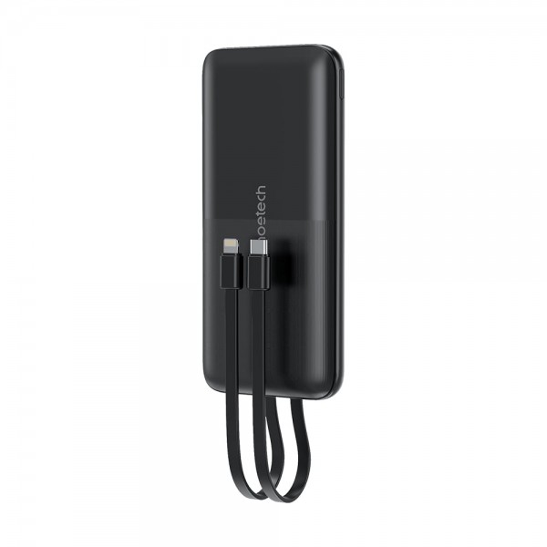 Повербанк з ємністю батареї 10000 мА·год, з вбудованими кабелями Type-C та Lightning; тип батареї: літій-полімерна (Li-pol); інтерфейси вхідні: Type-C: 5V/3A, 9V/2A, micro-USB: 5V/2A, 9V/2A, вихідні: USB-A/Type-C: 5V/4.5A, 4.5V/5A, 5V/3A,9V/2A,12V/1.5A (Type-C PD 22.5 Вт макс.), Type-C кабель: 5V/3A, 9V/2.2A, 12V/1.5A (18 Вт макс.), Lightning кабель: 5V/2A; протоколи швидкого заряджання QC/PD; LED-індикація заряду; розміри 148 / 68 / 17.2 мм; вага 242 г