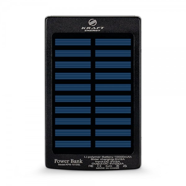 Повербанк з сонячною панеллю 10000mAh Power Bank Kraft KPB-1012SL Black LED-ліхтар