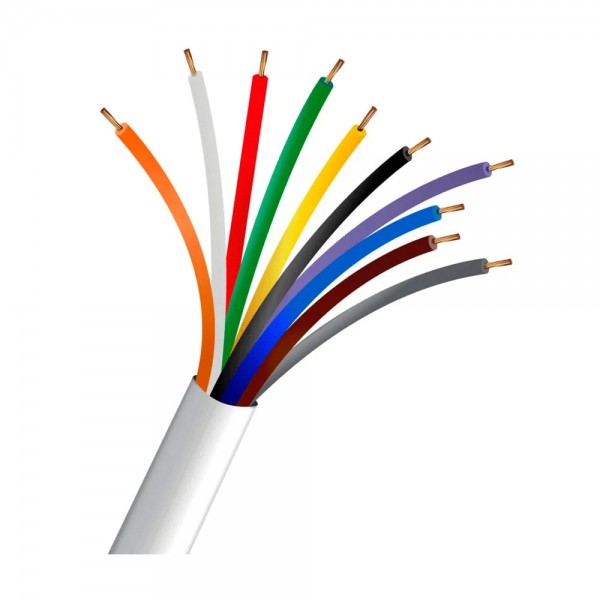 Кабель сигнальний, 10 жил з міді Cu діаметром 0.22 мм, неекранований, оболонка PVC-пластикат білого кольору, опір жили 8.5 Ом/100 м, бухта 100 м