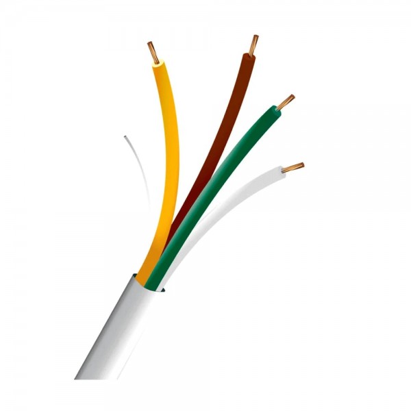Кабель сигнальний, 4 жили з біметалу ССA – алюмінієвий сплав покритий міддю – діаметром 0.22 мм, неекранований, оболонка PVC-пластикат білого кольору, опір жили 14.5 Ом/100 м, бухта 100 м