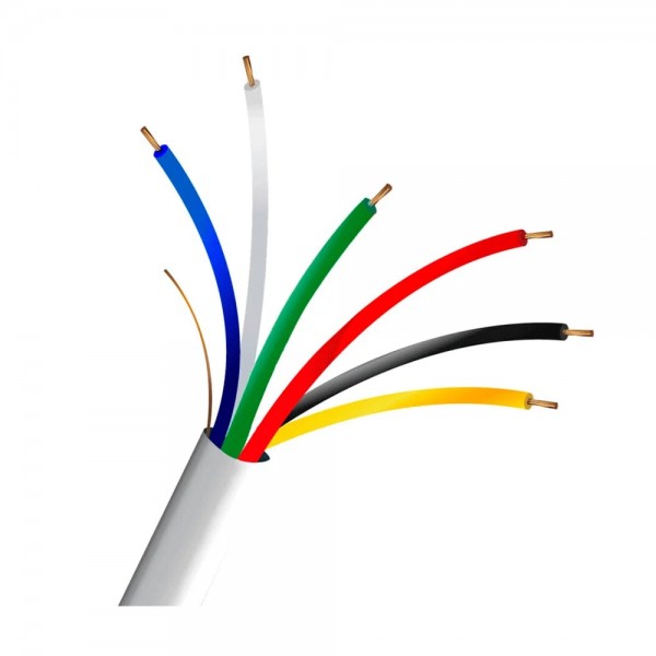Кабель сигнальний, 6 жил з міді Cu діаметром 0.22 мм, неекранований, оболонка PVC-пластикат білого кольору, опір жили 8.5 Ом/100 м, бухта 100 м