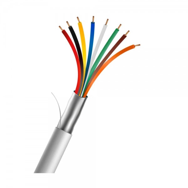 Кабель сигнальний, 8 жил з біметалу ССA – алюмінієвий сплав покритий міддю – діаметром 0.22 мм, екран з фольги, оболонка PVC-пластикат білого кольору, опір жили 14.5 Ом/100 м, бухта 100 м