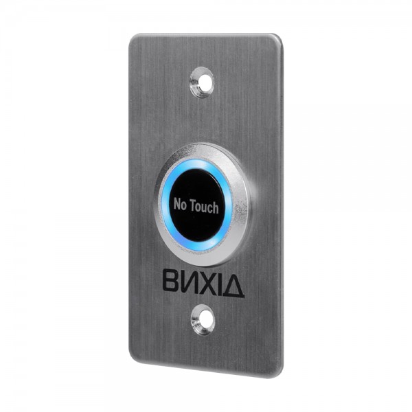 Кнопка виходу безконтактна; монтаж врізний; тип контакту Н/Р, Н/З; LED-підсвічування кнопки; живлення DC 12-24 В; матеріал корпусу алюміній; розмір 86 / 50 / 30 мм