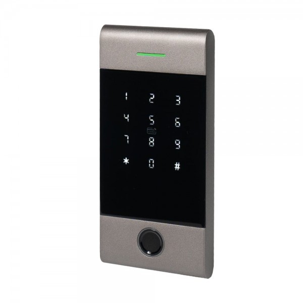Автономна сенсорна клавіатура/контролер зі скануванням відбитку пальця та вбудованим зчитувачем карток і брелоків Mifare (13.56 МГц); вбудований Bluetooth, працює через мобільний застосуноки TTHotel та TTLock; контроль доступу: за відбитком пальця, кодом, картою, через мобільний застосунок; живлення DC 12 В; матеріал алюмінієвий сплав; ступінь захисту IP65; розміри 158 / 74 / 17 мм