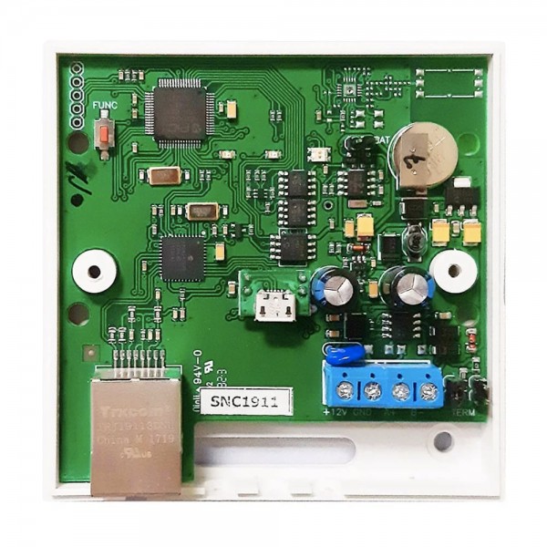 Контролер керування ліфтами в системі U-Prox IP за допомогою модулів U-Prox RM; підтримує до 8 модулів U-Prox RM, до 64 поверхів; ідентифікаторів: 32000; подій: 47000; робота в IP-мережах: Ethernet 100Mbit (4-дротовий); зовнішнє живлення 12 В; розміри 86.5 / 86.5 / 27.25 мм