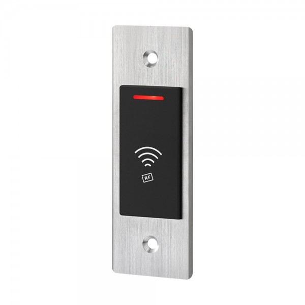 Автономний контролер/зчитувач EM-Marine 125 kHz, водонепроникний; одне реле (max 1 А); 10000 користувачів; дальність зчитувача карт 2-5 см; контакти реле NO/NC/COM; час відчинення дверей 0-99 с (налаштовується); програмується за допомогою майстер-карт чи пульта дистанційного керування; живлення DC 12-24 В, споживання 100 мА; металевий корпус; ступінь захисту IР68; робоча температура від -45°C до +60°C; розміри 115 / 39 / 20 мм; вага 105 г