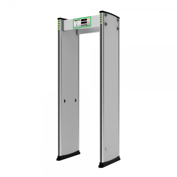 Арочний металодетектор для внутрішнього встановлення з 18 зонами детекції; 2000 рівнів чутливості; LED-екран з відображенням кількості проходів і тривог; робоча частота 7-9 кГц; лічильник проходів і тривог; захист паролем зміни параметрів; світлодіодна і звукова індикація; живлення від адаптера DC12V/3A; робоча температура -20°C~+45°C; зовнішні розміри 2225 / 821 / 505 мм; розміри проходу 2025 / 700 / 500 мм; розміри пакування 2270 / 628 / 200 мм; вага нетто 47 кг, вага брутто 55 кг