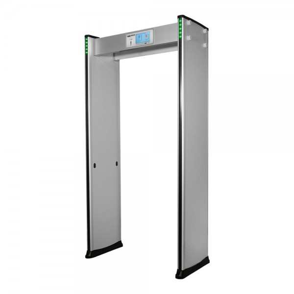 Арочний металодетектор для внутрішнього встановлення з 18 зонами детекції, з шириною проходу 1 м; 1000 рівнів чутливості; сенсорний 7-дюймовий LCD-екран; лічильник проходів і тривог; захист паролем зміни параметрів; світлодіодна і звукова індикація; живлення 100-240 В; потужність споживання 30 Вт; робоча температура -25°C~+55°C; зовнішні розміри 2225 / 1120 / 580 мм; розміри проходу 2025 / 1000 / 505 мм; вага брутто 57 кг