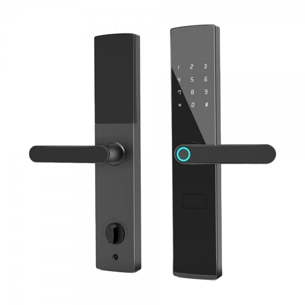 Біометричний автономний електрозамок з Bluetooth і зчитувачем відбитків пальців та карт Mifare 13.56 МГц; відімкнення за допомогою: відбитку пальця, коду, картки, застосунку, ключа; кількість користувачів до 100, адміністраторів до 10, відбитків пальців до 50, карток до 110, паролів до 110, довжина паролю до 16 знаків; роз'єм USB Type-C; застосунок для роботи TTLock; живлення 4*АА батарейки; робочий струм 250 мА; тип і матеріал дверей: лівобічні / правобічні, металеві / пластикові / дерев'яні; врізний монтаж; матеріал корпусу алюмінієвий сплав; розміри 355 / 68 мм, серцевина 24 / 240 6068