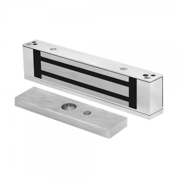 Електромагнітний замок з силою утримання до 200 кг; живлення 12 В; споживання струму 430 мА; накладний монтаж; розміри 170 / 45 / 22 мм