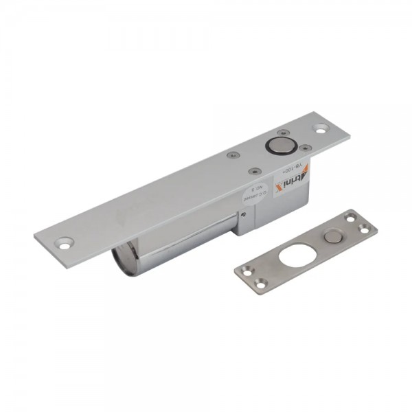 Електроригельна врізна защіпка, НР – відімкнена за відсутності живлення; таймер затримки зачинення 0,3,6,9 с; живлення 12 В, споживання струму 150 мА; розмір защіпки 205 / 35 / 40 мм, довжина ригеля 16 мм