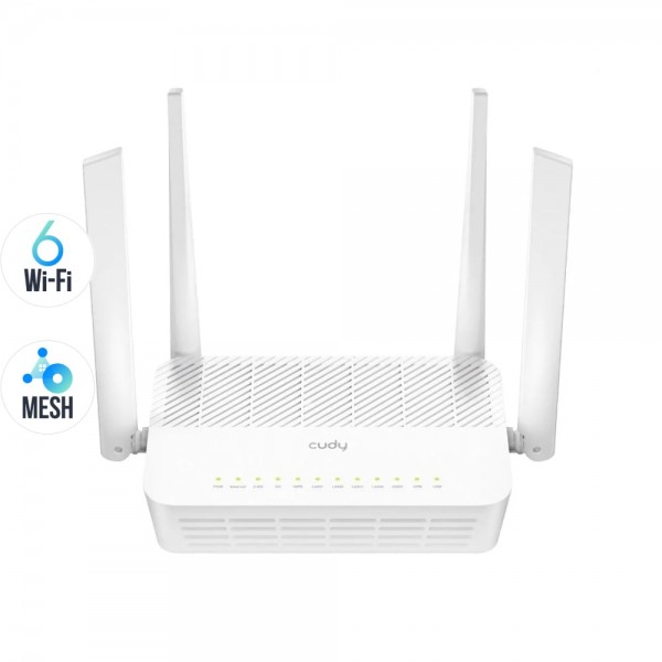 Дводіапазонний WiFi 6 Mesh 2.5G маршрутизатор; WiFi-стандарти 802.11ax/ac/a/b/g/n; 2402 Мбіт/с на 5 ГГц + 574 Мбіт/с на 2.4 ГГц; порти: 2.5G WAN, 4 гігабітних LAN; ширина каналу: 20/40/80/160 МГц; RAM/ROM: 256 DDR3 / 128 Мб; 4 фіксовані антени 5dBi; режими WiFi-маршрутизатор / розширювач / Mesh / AP – точка доступу / WISP; MU-MIMO, OFDMA, Beamforming; DDNS; VPN-клієнт PPTP / L2TP / OpenVPN / WireGuard / IPsec; підтримка сервісу Zerotier; DNS через CloudFlare / Quad9 / Google; IPv6, безшовний роумінг; WPA3; протоколи віддаленого керування TR069 / TR098 / TR111 / TR181; живлення 12 В/1.5 А, блок живлення у комплекті; робоча температура 0°C~+40°C; розміри 173 / 123.8 / 33 мм