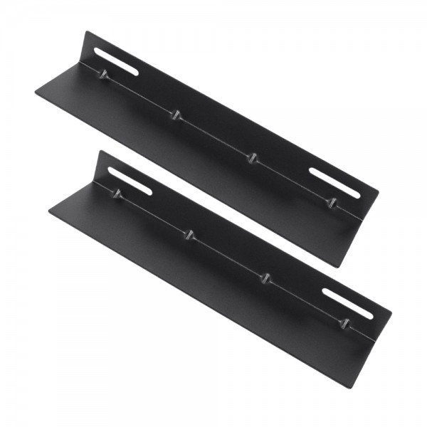 Комплект напрямних кріплень для комутаційної шафи глибиною 450 мм; допустиме навантаження від 30 до 60 кг; матеріал корпусу: сталь, пофарбована порошковою фарбою чорного кольору; розміри 300 / 71 / 37 мм, відстань між отворами 176 мм