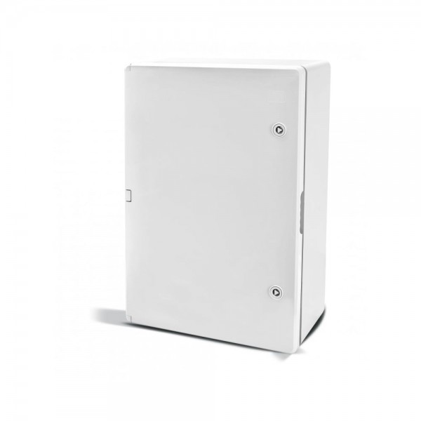 Шафа удароміцна з ABS-пластику з непрозорими дверцятами і монтажною панеллю. Монтаж навісний. Робоча температура -40 °С ~ +80 °С. Клас захисту IP65, розміри 600 / 400 / 200 мм