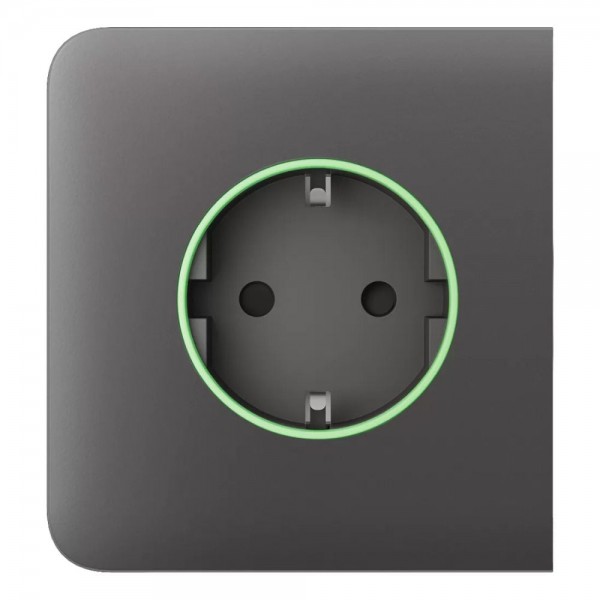 Бічна фронтальна панель для комбінованої розумної розетки Ajax Outlet (type F); складається з передньої панелі з сенсорною кнопкою для ручного керування живленням підключених пристроїв та кришки розетки, що закриває отвір з контактами; підсвічування (з можливістю вимкнути в застосунку Ajax); розміри: передня панель 82.3 / 76.2 / 10.1 мм, кришка розетки 42.5 / 21.5 мм; вага: передня панель 26 г, кришка розетки 8 г; колір сірий