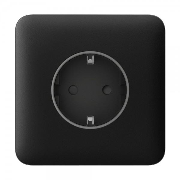 Фронтальна панель для одинарної розетки Ajax Outlet (type F); складається з передньої панелі та кришки розетки, що закриває отвір з контактами; розміри: передня панель 82.3 / 82.3 / 9.2 мм, кришка розетки 44 / 19.5 мм; вага: передня панель 12 г, кришка розетки 5 г; колір чорний