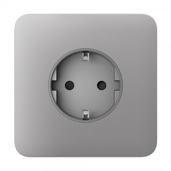 Фронтальна панель для одинарної розетки Ajax Outlet (type F); складається з передньої панелі та кришки розетки, що закриває отвір з контактами; розміри: передня панель 82.3 / 82.3 / 9.2 мм, кришка розетки 44 / 19.5 мм; вага: передня панель 12 г, кришка розетки 5 г; колір димний
