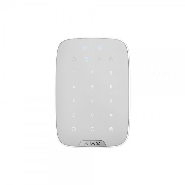 Бездротова сенсорна клавіатура зі зчитувачем безконтактних брелоків Ajax Tag / карток Ajax Pass ISO14443-А (13.56MHz) за технологією DESFire®; сумісна з централями (хабами) Ajax Hub Plus, Hub 2, Hub 2 Plus, Hub Hybrid, ретрансляторами ReX / ReX 2 з OS Malevich 2.11 і вище; дальність зв'язку до 1700 м; протокол Jeweller; живлення 4 батареї АA; 165 / 113 / 20 мм