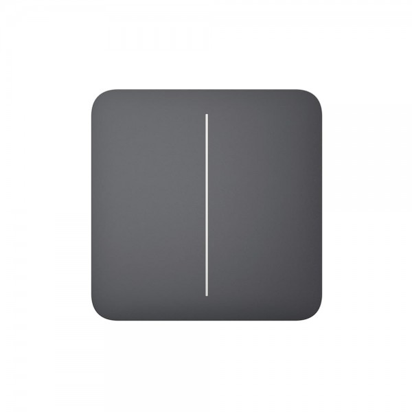 Кнопка для одинарного двоклавішного розумного вимикача Ajax LightSwitch. Кнопка з сенсорною панеллю спрацьовує як на дотик, так і безконтактно — на відстані до 15 мм. Підсвічування (з можливістю вимкнути в застосунку Ajax). Розміри 82.75 / 82.75 / 10.26 мм, вага 45.75 г, колір графіт