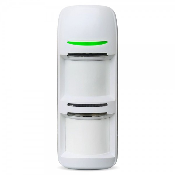 Бездротовий датчик руху пасивний інфрачервоний вуличний, з 2 елементами живлення CR123A, до 5 років роботи; відстань детектування об'єктів 3-15 м, кут огляду 90 градусів; імунітет до тварин зростом до 80 см / вагою до 20 кг; антимаскінг; дальність зв’язку з централлю до 4800 м на відкритому просторі, робоча частота 868-868.6 МГц; універсальний кронштейн та піддашок в комплекті; клас захисту IP55; розміри 180 / 70 / 62.5 мм; вага 290