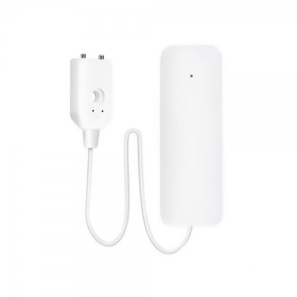 Бездротовий датчик затоплення з підтримкою WiFi 2.4 ГГц (IEEE 802.11b/g/n) та можливістю керування і налаштування через мобільний застосунок Tuya; працює без підключення до централі; робоча напруга 3 В; струм споживання 10 мА; розміри 72 / 25 / 10 мм; вага 45 г