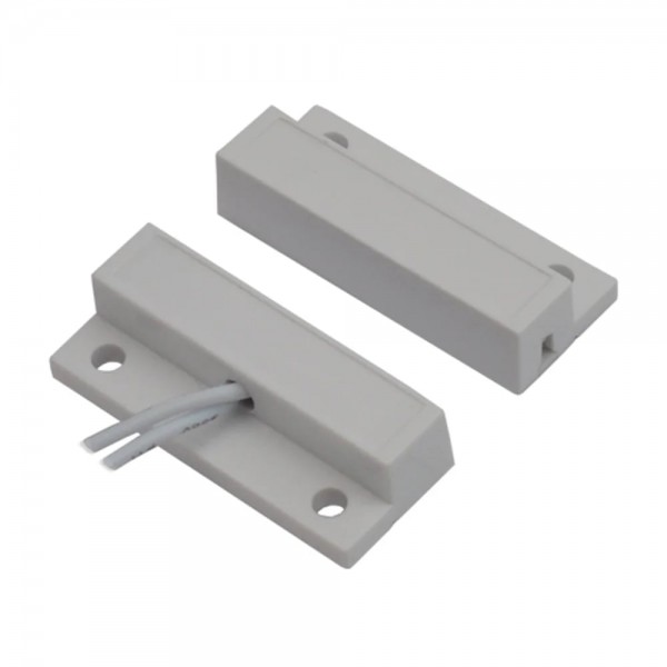 Магнітоконтакт накладний, для встановлення на пластикові чи дерев'яні двері або віконні рами; струм 60 мА; напруга 12 B; тип контактів Н/З; робоча відстань спрацювання 18±5% мм; габаритні розміри 25 / 10 / 14 мм