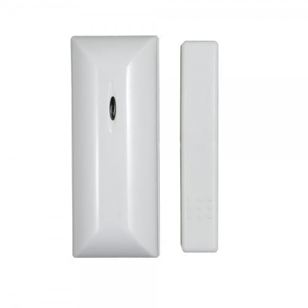Бездротовий датчик відчинення дверей/вікон для внутрішнього встановлення; тип сенсора - геркон; поріг спрацьовування 2.5 см; робоча частота 433 МГц; дальність зв'язку на відкритій місцевості до 150 м; тампер; світлодіодна індикація; живлення від літієвої батареї CR123 3 В; робоча температура -10°C~+50°C; розміри передавач 81 / 32 / 25 мм, магніт 75 / 14 / 19 мм