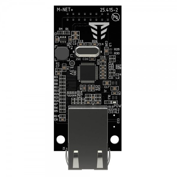 Ethernet-комунікатор для реалізації Ethernet-каналу зв'язку в ППК серії Orion NOVA; інтерфейс 1хLAN 10/100 Mбіт/с; живлення 12 В; струм споживання 80 мА; розміри 30 / 24 / 70 мм; вага 16 г