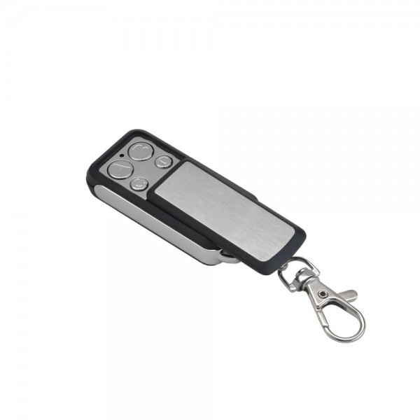 Радіобрелок-пульт дистанційного керування; частота 433 МГц; кількість кнопок: 4; радіус дії до 100 м; код, що приймається: фіксований (24 біт); живлення літієва батарейка 12В (тип 27А); потужність передавача менше 5 мВт; розміри 35 / 10 / 14 мм