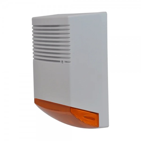 Вулична автономна світлозвукова сирена; акустична потужність 128 дБ; напруга живлення 12 В; струм споживання 1600 мА; місце під АКБ 1.2-7 Аг – АКБ купується окремо; зовнішнє встановлення; пластиковий корпус та внутрішній додатковий зі сталі; робоча температура -30°C~+60°C; розміри 280 / 195 / 90 мм; вага 1425 г