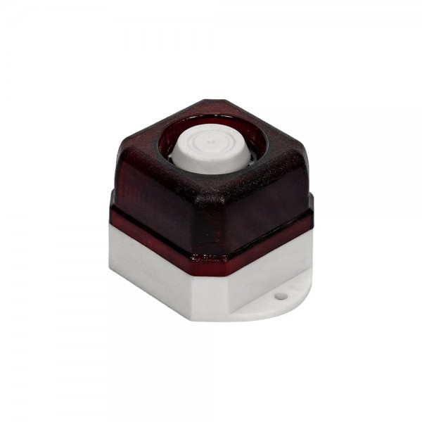 Оповіщувач світлозвуковий; акустична потужність 105 дБ; номінальна напруга 12 В; споживаний струм 200 мА; для внутрішнього встановлення; робоча температура -40 °C ~ +50 °C; розміри 72 / 52 / 43 мм, вага 70 г