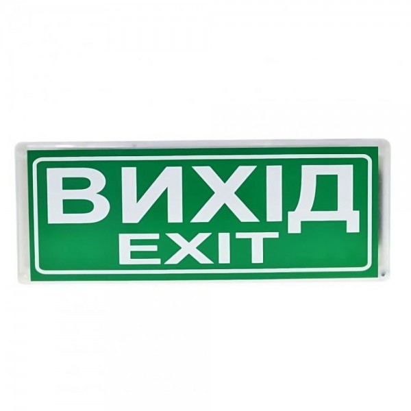 Покажчик світловий виходу з великою поверхнею для нанесення інформаційного напису. Номінальна напруга 12/24 В; споживаний струм 35 мА; клас захисту IP52; робоча температура -10 °C ~ +55 °C; розміри 296 / 116 / 63 мм, вага 400 г. Окрім стандартних заводських написів, можна виготовляти індивідуальні – на замовлення