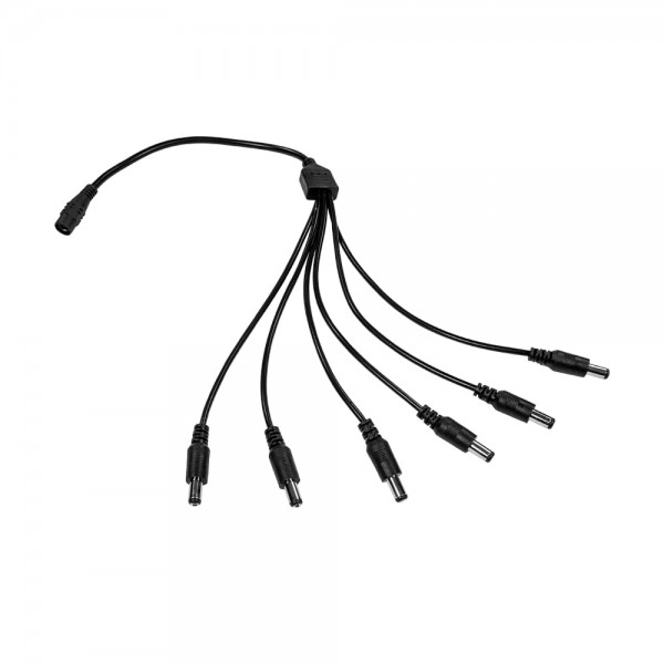 Розгалужувач слаботочного живлення DC 1/6 12V для одночасного підключення шести відеокамер до джерела живлення DC 12 В. Роз’єми DC: одне гніздо «мама» та шість штекерів «тато»