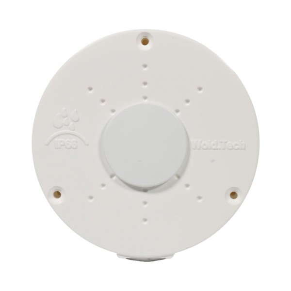 Універсальна монтажна коробка для монтажу камер відеоспостереження, також можна використовувати як комутаційний бокс. Герметичні вводи (сальники) у комплекті, клас захисту IP66, стійкість до ультрафіолету, робоча температура від -30 °C до +60 °C. Матеріал: поліпропілен. Розміри коробки 112 / 34 мм. Колір білий