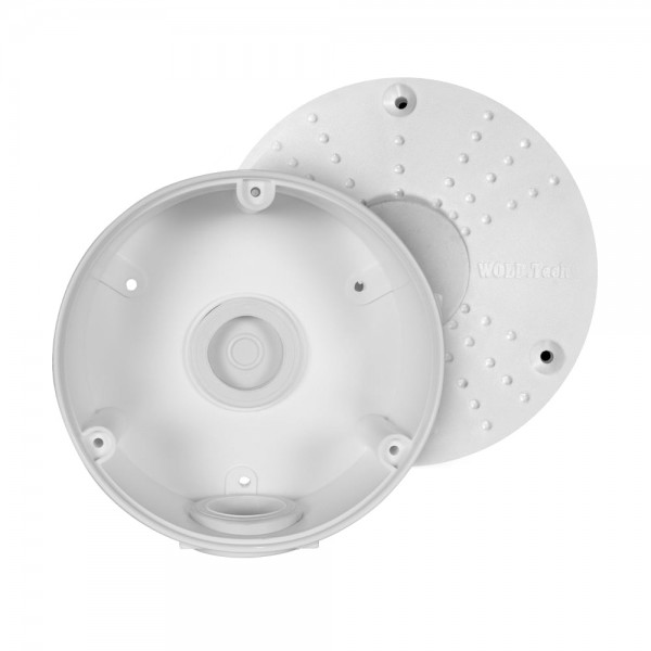 Універсальна монтажна коробка для монтажу камер відеоспостереження, також можна використовувати як комутаційний бокс. Герметичні вводи (сальники) у комплекті, клас захисту IP65, стійкість до ультрафіолету, робоча температура від -30 °C до +60 °C. Матеріал: поліпропілен. Розміри коробки 113 / 110 / 48 мм, діаметр кришки 117 мм