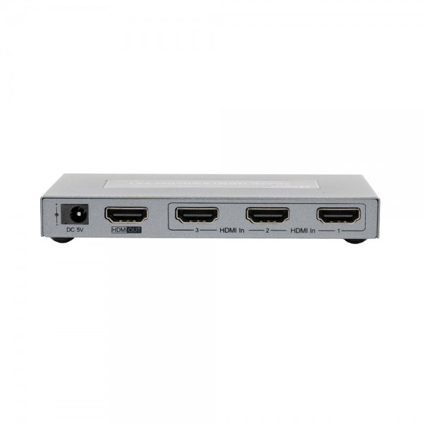 4K HDMI комутатор; 3 вхідних портів HDMI, 1 вихідний порт HDMI; підтримка роздільної здатності до 3840*2160@60Hz; аудіоформати DTS-HD / Dolby-trueHD / LPCM7.1.DT S/ DOLBY-AC2 / DSD / HS (HB); ІЧ-пульт керування у комплекті; живлення DC 5 В; розмір: 120 / 58 / 11 мм