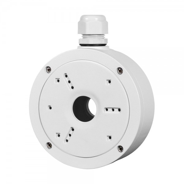 Монтажна коробка для встановлення камер відеонагляду; матеріал метал; накладний монтаж на стіну або стелю; колір білий; гвинти для кріплення у комплекті; розміри 137 / 52 мм
