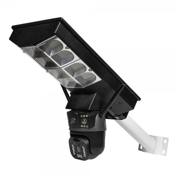 3Mp+3Mp автономна поворотна IP-відеокамера з підтримкою Wi-Fi, з сонячною панеллю, вбудованим акумулятором та LED-прожектором; матриця 1/2.9″ CMOS; основний відеопотік 1920*2160@15 к/с; ІЧ-підсвічування до 20 м + LED-підсвічування до 20 м + прожектор; відеокомпресія H.265; фіксований об’єктив f=4 мм, кут огляду 110°; кути повороту/нахилу 355°/90°; керування через мобільний застосунок V380; стандарт бездротового зв’язку Wi-Fi 2.4 ГГц (IEEE802.11b/g/n); PIR-датчик руху з дальністю виявлення до 12 м та кутом виявлення 95°; живлення: DC 5 В/3.65 А (роз'єм живлення USB Type-C), сонячна панель, вбудована акумуляторна батарея Li-ion 3.7 В ємністю 12000 мА·год для камери та 8000 мА·год для прожектора; вбудовані мікрофон і динамік; запис на microSD карту до 128 ГБ; ступінь захисту IP66; робоча температура -10°C~+60°C; розміри 450 / 260 / 220 мм; вага 2290 г