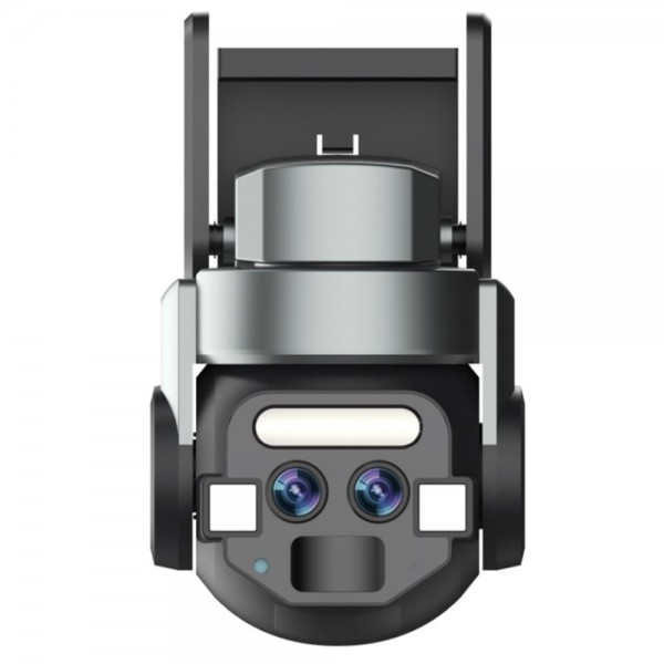 6Mp (2*3Mp) вулична поворотна IP-відеокамера з підтримкою Wi-Fi (2.4 ГГц), з подвійним об’єктивом і подвійним підсвічуванням; об’єктив (4 мм + 8 мм) для вільного перемикання з різними фокусними відстанями; матриця 1/2.8″ CMOS; роздільна здатність запису 2304*1296 x2; відеокодек H.264/H.265; кут повороту 0-350°, кут нахилу 0-90°; ІЧ-підсвічування до 20 м + LED 15 м; повнокольорове зображення в нічному режимі; віддалений моніторинг на смартфонах (застосунок CareCamPro); виявлення руху на відстані до 12 м, детекція людини; вбудований мікрофон та розмовний динамік; запис за детекцією на карту micro SD (до 128 Гб) або у хмарний сервіс; живлення 12В/1.2А, блок живлення у комплекті; потужність споживання 15 Вт; робоча температура -20°C~+60°C; клас захисту IP65; розміри 185 / 165 / 120 мм; вага 560 г