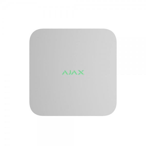 16-канальний мережевий відеореєстратор; роздільна здатність 8MP; відеокодек H.265, H.264, швидкість запису 25/30fps; пропускна здатність 100Mbps; сумісність: всі хаби Ajax; канали зв’язку: Ethernet 100Mbps, Bluetooth; ONVIF, RTSP; підтримка HDD: SATA x 1 до 16 ТБ; програмне виявлення руху, відеостіна; тампер від злому; живлення: DC 12 В; розміри 251 / 251 / 51 мм; вага 700 г
