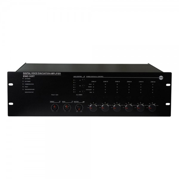 Розширювач зон 6-зонний (12 ліній), вбудований 240 Вт підсилювач класу D, розширення до 120 зон, мікрофон пожежного 5 мВ, 600 Ом; входи ліній 1-2 385 мВ, 10 кОм; збалансований Combo XLR; входи ліній 3-6 350 мВ, 10 кОм, RCA; частотна хар-ка 80-20000 Гц; THD <1% при номінальній напрузі, 1 кГц; співвідношення S/N 70 дБ; вихід динаміка 100 В AB 6-ти зонний вихід на динамік; вихід REC 200 мВ; 8 входів управління: Max 3.3 В (режим напруги) або 0 В при замкненому контакті; монтаж у стійку 19"; розміри 484 / 132 / 449 мм; вага 21 кг