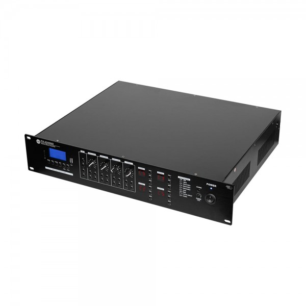 4-зонний матричний мікшуючий підсилювач; вихідна потужність 4x 240 Вт; вбудований MP3-медіаплеєр з USB/SD, FM-тюнер, Bluetooth; вихід на гучномовець 100 В/8-16 Ом; входи: 3 мікрофонних/лінійних входи, 1 додатковий вхід; можливість підключення до 4 панелей дистанційного керування та до 8 віддалених мікрофонів – купуються окремо; живлення AC 230 В; встановлення у стійку 19"